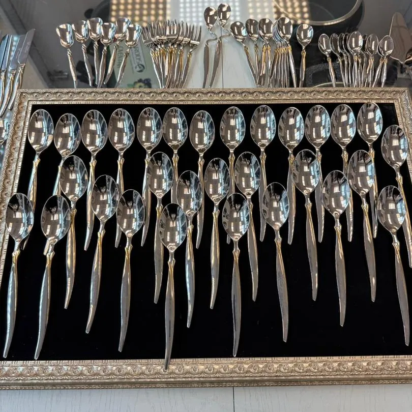 سرویس قاشق چنگال ۱۴۳ پارچه طلایی از برند SG کد249