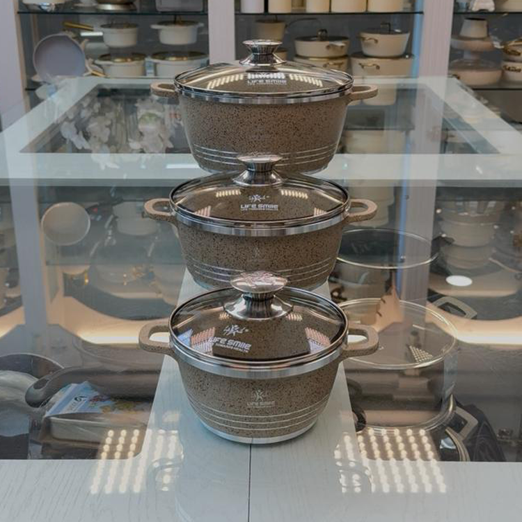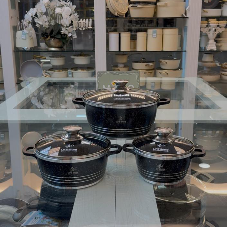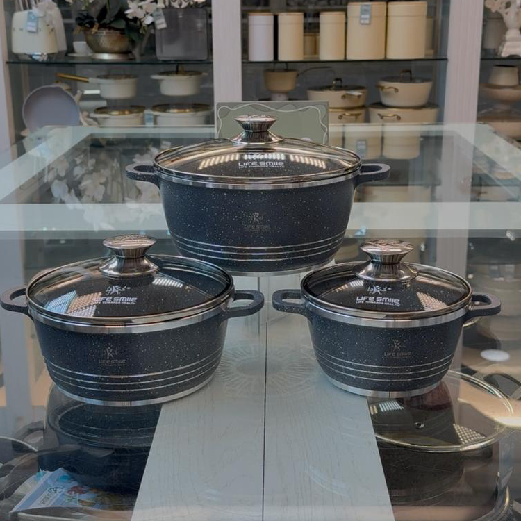 سرویس قابلمه ۶ پارچه لایف | چدن گرانیت نچسب | طراحی یکپارچه