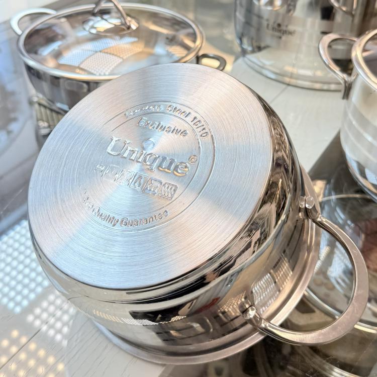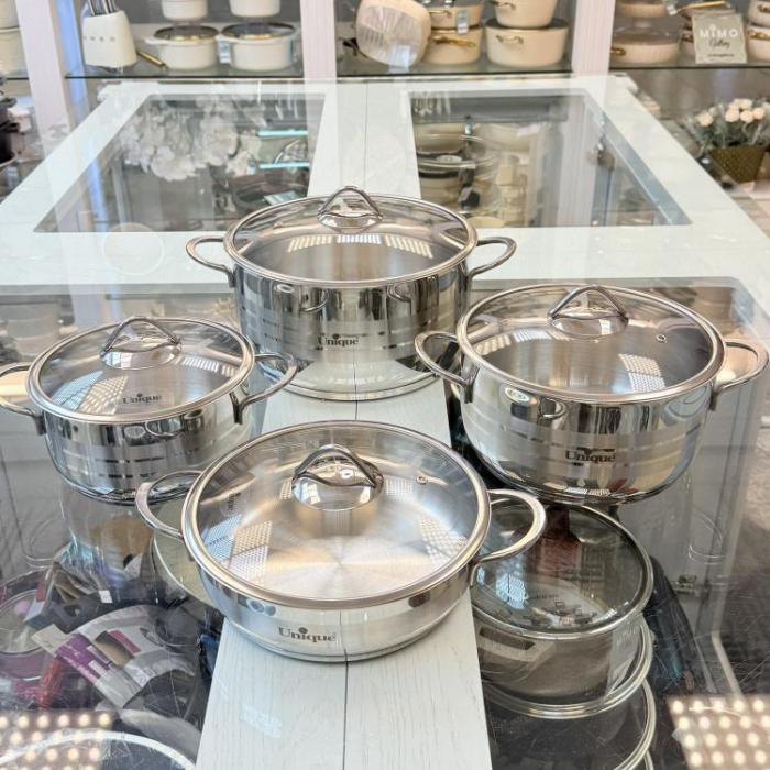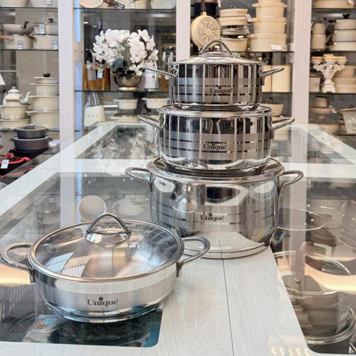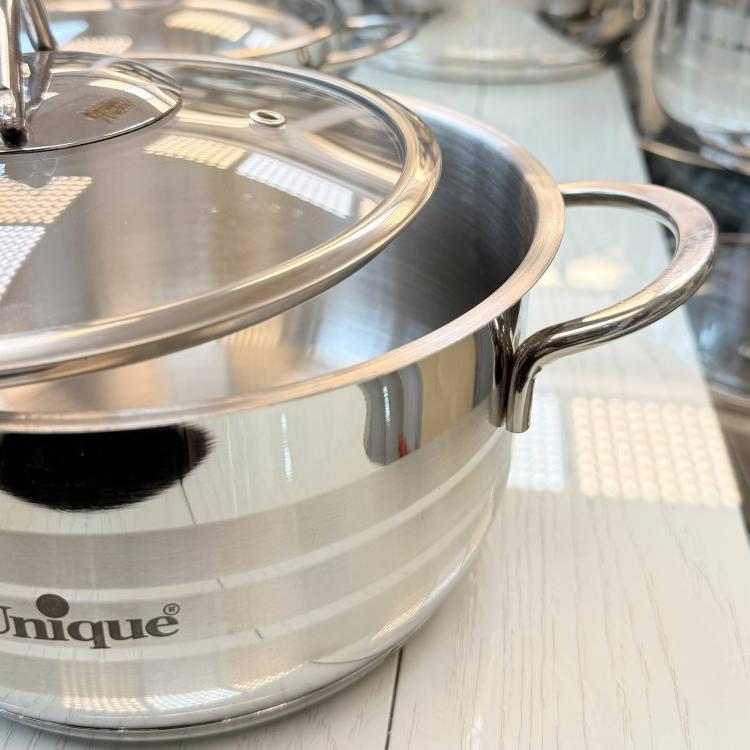 سرویس قابلمه 8 پارچه تمام استیل برند یونیک مدل راه راه مات