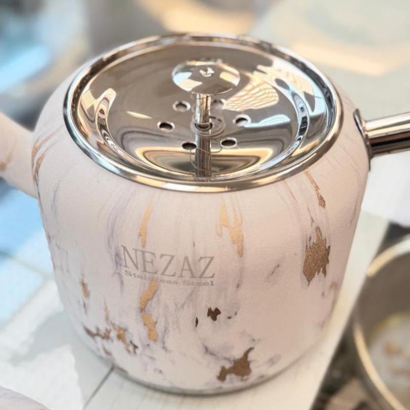 کتری قوری استیل نزاز طرح دسته طلایی